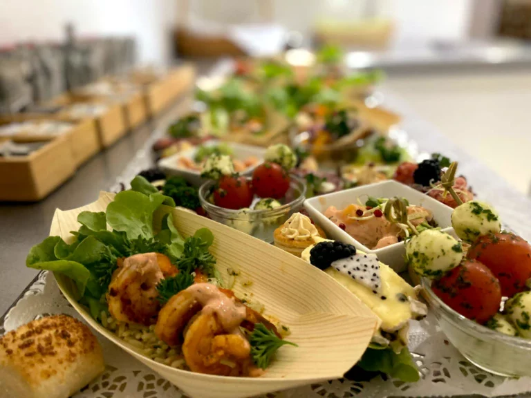 täglich frisch zubereitete Salatvariationen, mit Möhrensalat und Ananas, Selleriesalat mit Walnüssen und Mandarinen, Gurkensalat in Joghurtsauce und vielem mehr