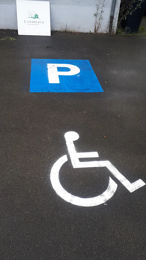 Ein ausgewiesener Behinderten-Parkplatz steht Ihnen am Ortseingang zur Verfügung. Direkt gegenüber zu unserem, rollstuhlgerechten und barrierefreien Trakt. Er ist großzügig bemessen, so dass auch Platz für größere Vans da ist.